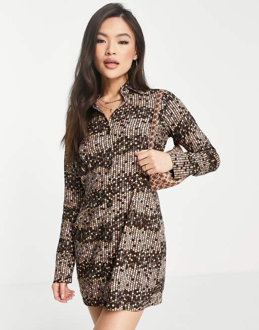 Motel relaxed mini button up bodycon dress in retro polka dot