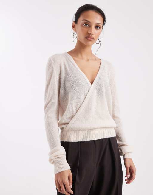 Motel Saroya plunge wrap knit top in ecru