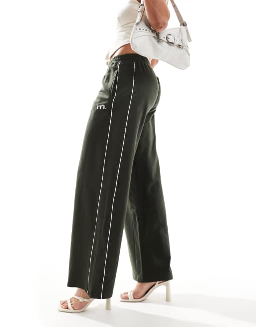 Motel side stripe wide leg tracksuit pants in olive