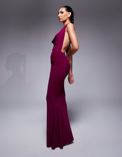 Murci exclusive mesh halterneck open back cowl neck maxi dress in red