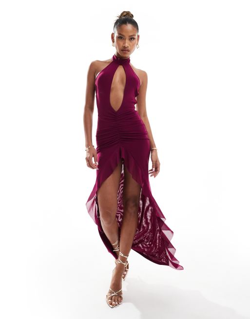 Murci mesh keyhole plunge halterneck maxi dress in purple