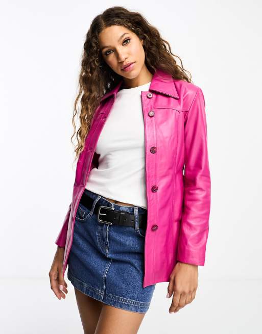 Muubaa 70s retro fitted leather jacket in pink