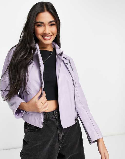 Muubaa Charlie drop shoulder leather biker jacket in lilac