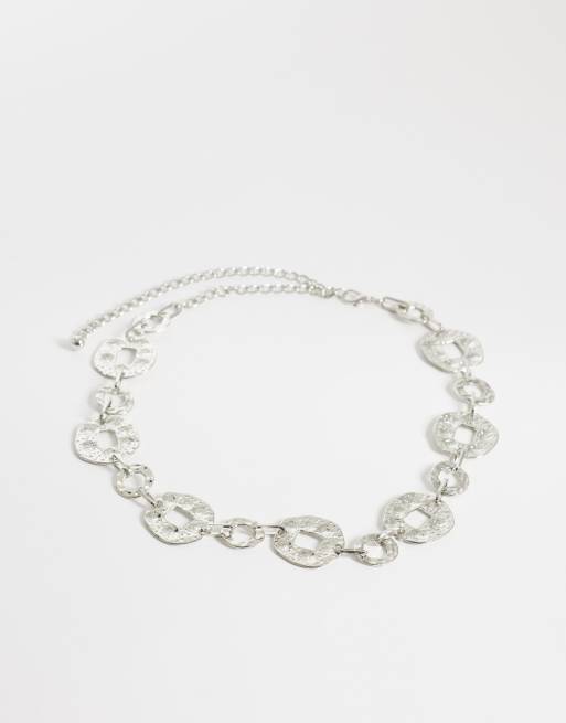 My Accessories oversized hammered circle belt in silver