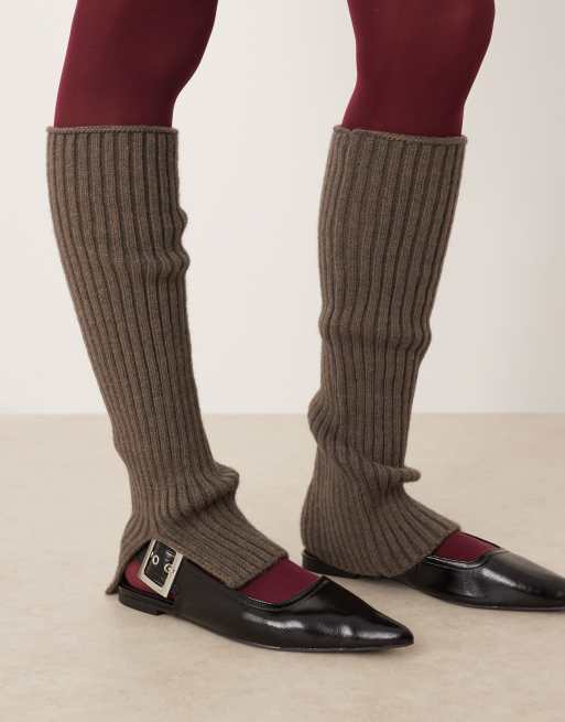 My Accessories ribbed leg warmers with slit detail in dark gray