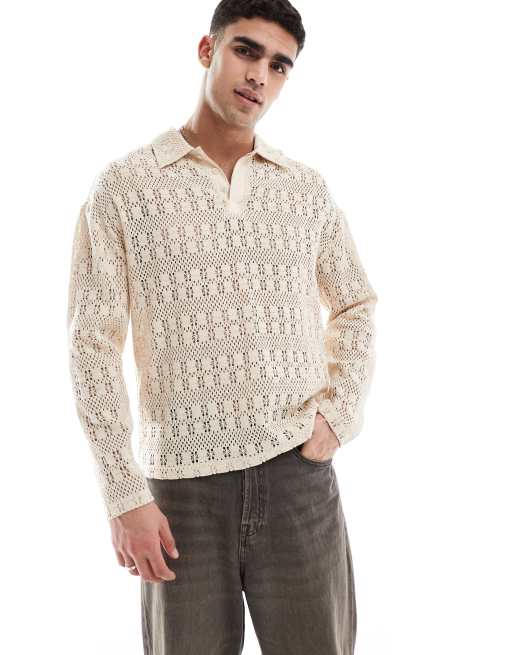 Native Youth crochet rugby polo shirt in cream