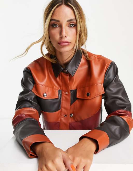 Neon Rose cropped jacket in wavy brown pu - part of a set