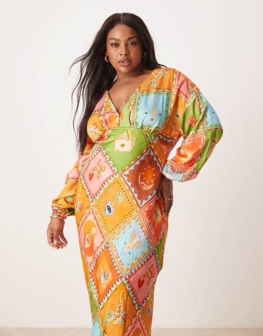 Never Fully Dressed Plus balloon sleeve midaxi dress in multi print