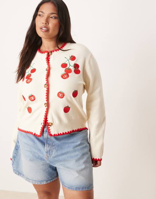 Never Fully Dressed Plus tomato knit cardigan in cream