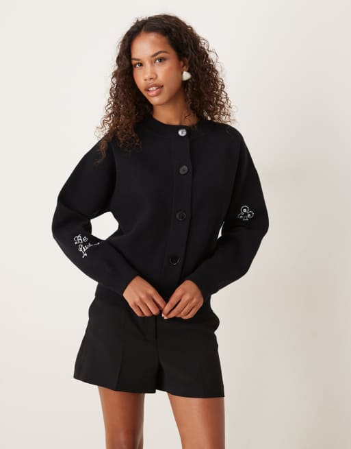 Never Fully Dressed Be Lucky pearl applique cardigan in black