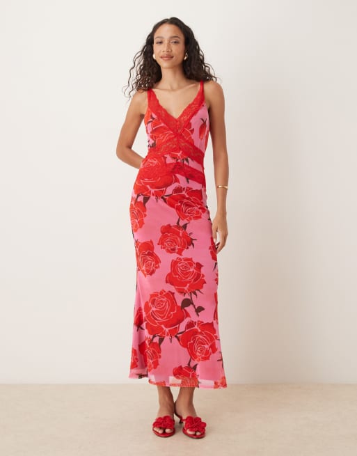 Never Fully Dressed contrast lace slip midaxi dress in rose print
