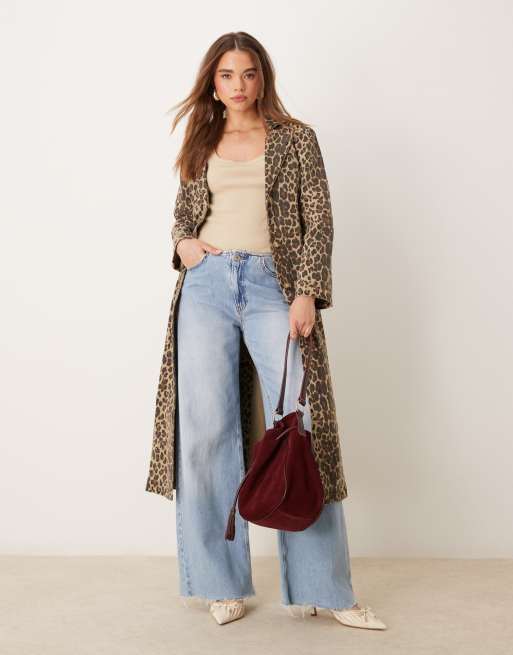 Never Fully Dressed denim longline jacket in leopard print