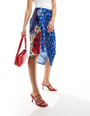 Never Fully Dressed Jaspre wrap midaxi skirt in blue bandana print - part of a set