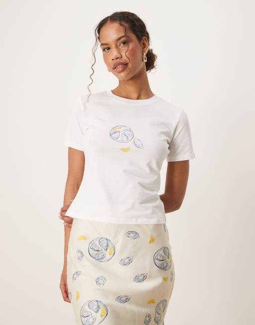 Never Fully Dressed lemon print baby tee in oyster - part of a set