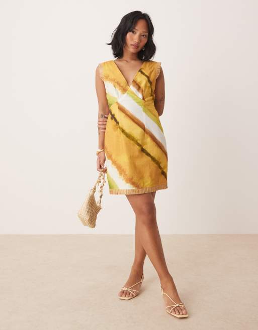 Never Fully Dressed Petite ruffle hem mini shift dress in green ombre print