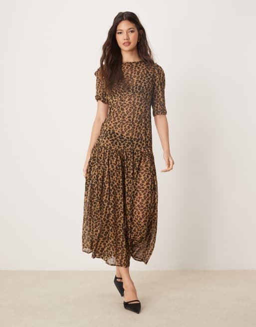 Never Fully Dressed puff sleeve sheer drop hem maxi dress in leopard