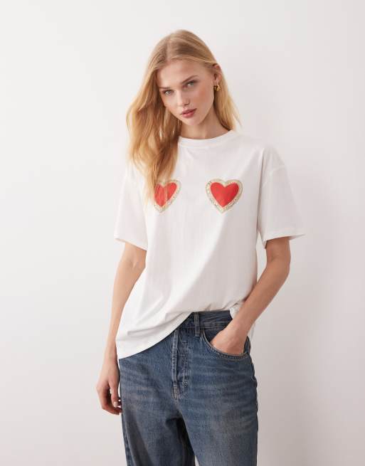Never Fully Dressed pure cotton heart print t-shirt in white