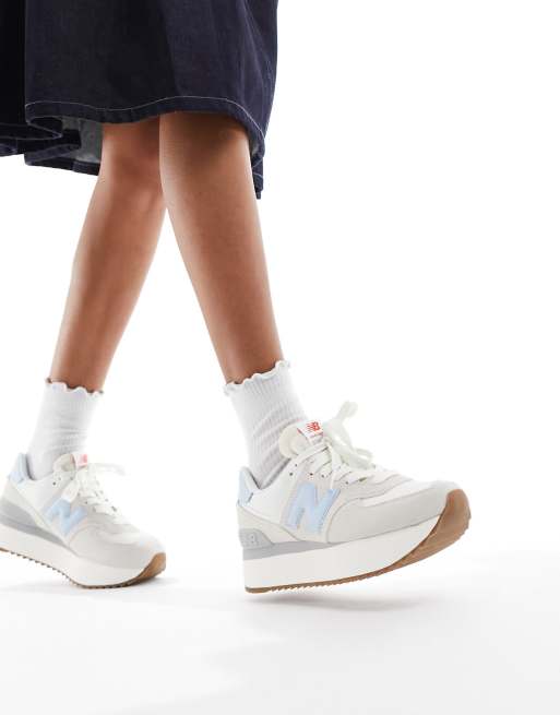 New Balance 574 sneakers in white with light blue detail