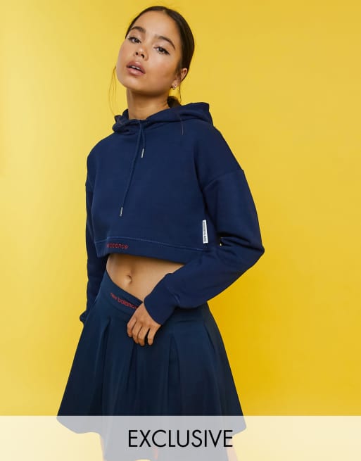New Balance cropped logo hoodie in navy - exclusive to ASOS