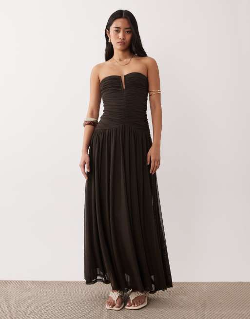 NIA Abbott Kinney strapless floaty midaxi dress in chocolate brown