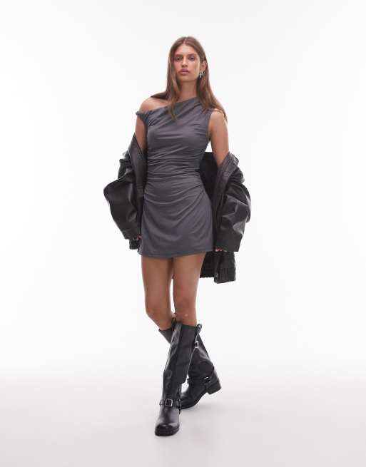 NIA Nola off the shoulder twist mini dress in gray