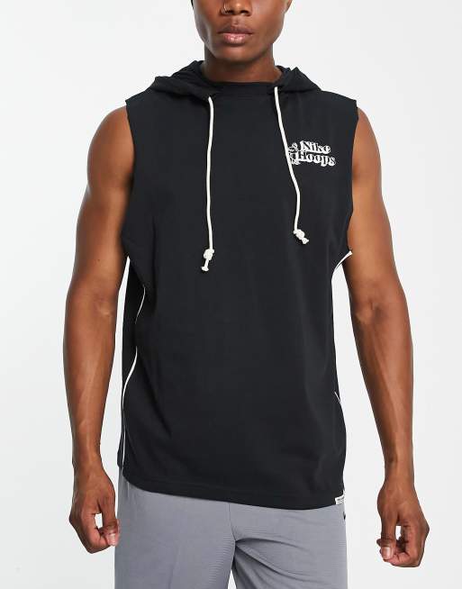 Nike Basketball Dri-FIT cut-off sleeveless hooded sweatshirt in black
