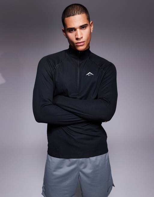 Nike Running Trail logo half zip sweatshirt in black
