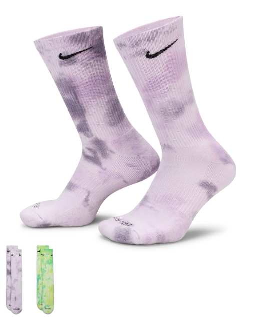 Nike Everyday Plus Cushioned 2 pack tie dye crew socks in purple