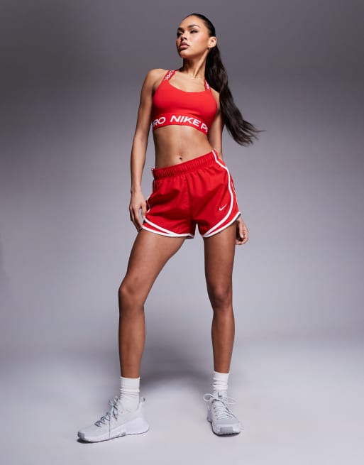 Nike Pro Training light support sports bra and Tempo 3 inch shorts in red