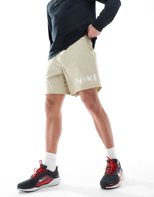 Nike Training blurred swoosh graphic 7 inch shorts in beige