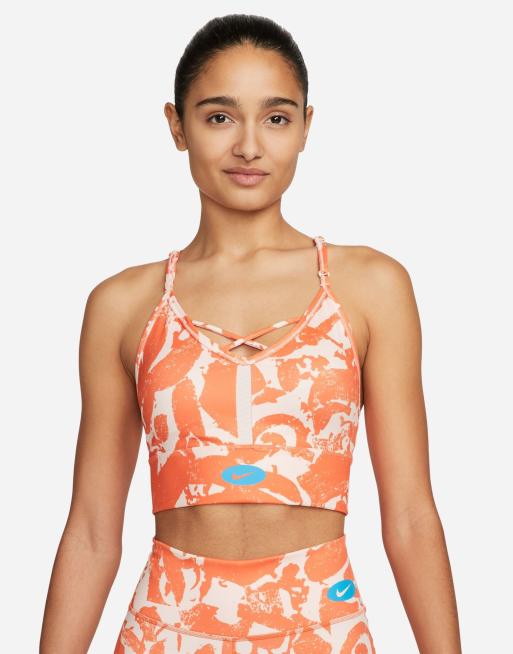 Nike Training Dri-FIT Indy Icon Clash all over print bra in orange