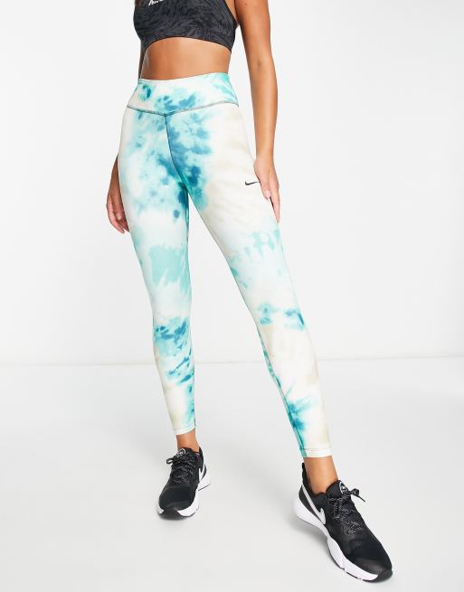 Nike Training Dri-FIT One mid-rise 7/8 tie dye tights in green/multi
