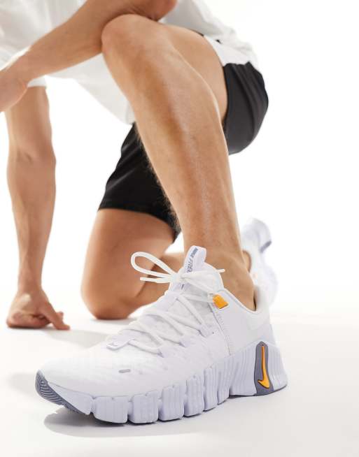 Nike Training Free Metcon 5 sneakers in white and orange