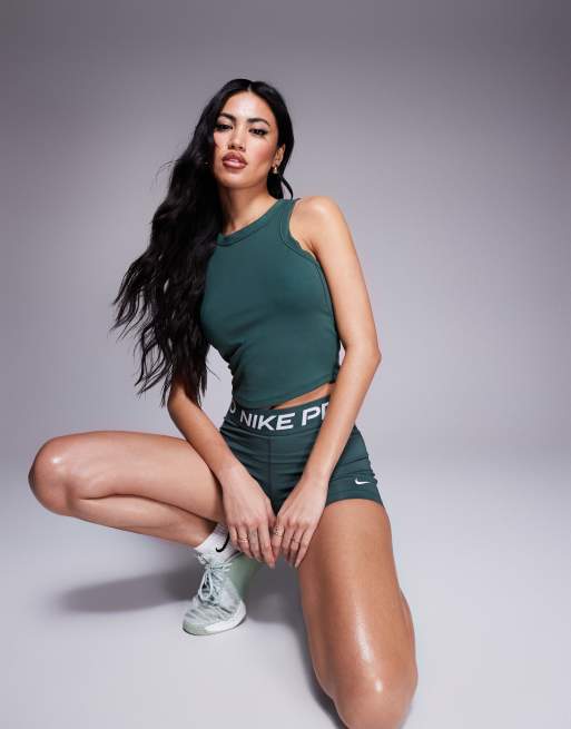 Nike Training One cropped tank top in khaki