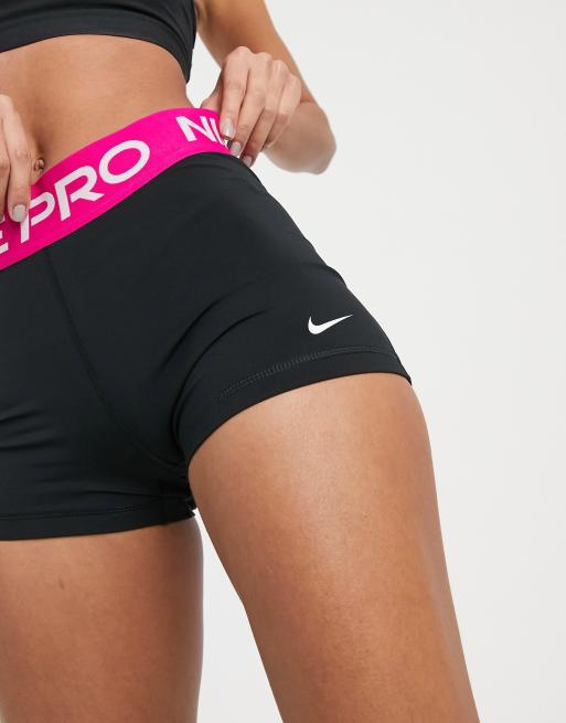 Nike Training Pro 365 3inch shorts with pink waistband in black