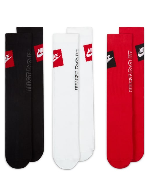 Nike 3 Pack Everyday Essential JDI socks in black/red/white