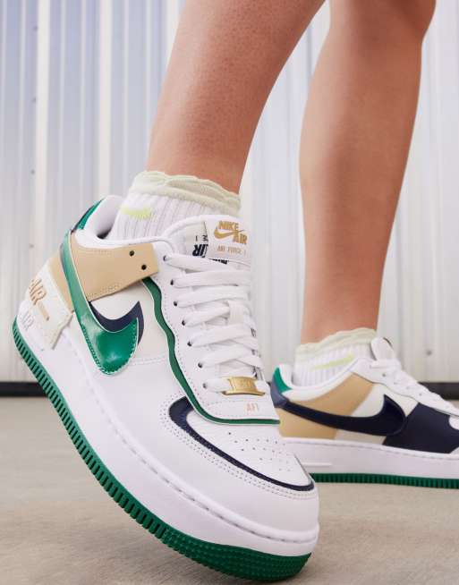 Nike Air Force 1 Shadow sneakers in white with green detail