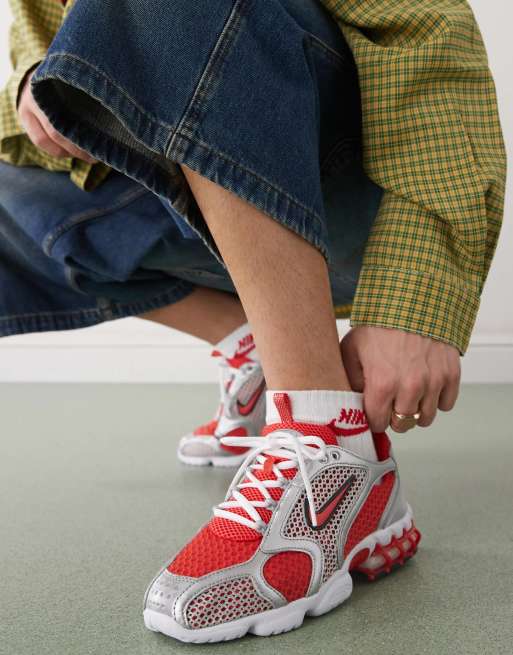 Nike Air Zoom Spiridon Cage 2 sneakers in silver and red