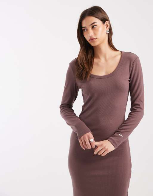 Nike Chill ribbed long sleeve dress in brown