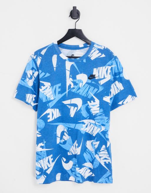 Nike Club all over logo print t-shirt in blue