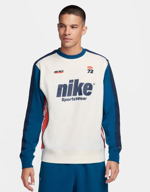 Nike Club Circuit crew neck sweatshirt in sail and blue