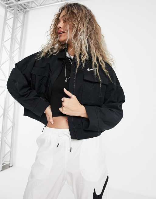 Nike Essential crop oversized woven field jacket in black