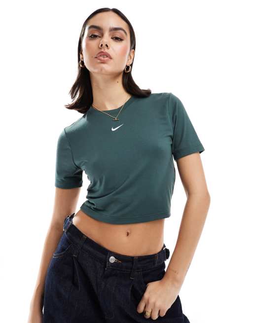 Nike Essential slim cropped t-shirt in dark green