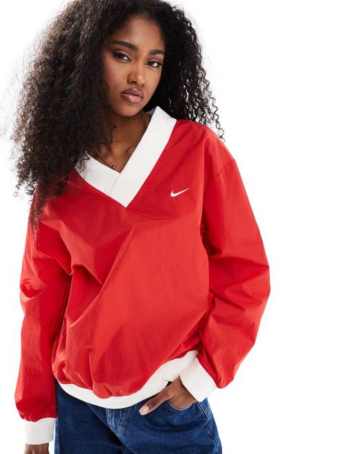 Nike Essential woven v-neck sweatshirt in red