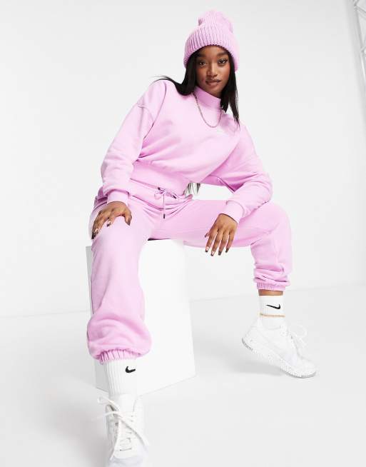 Nike essentials cropped mock neck sweatshirt in pink