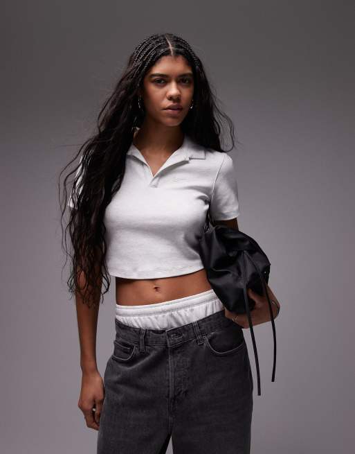 Nike Essentials cropped polo top in gray