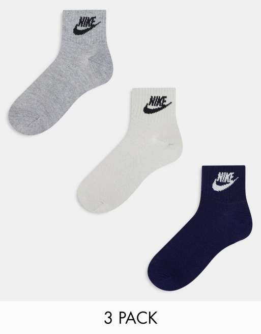 Nike Everyday Essential 3 pack ankle socks in off white, gray and navy