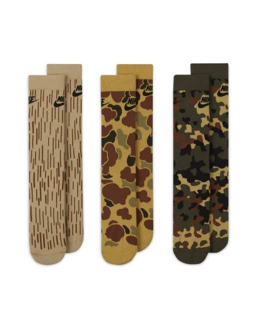 Nike Everyday Essential 3-pack crew socks in beige camo