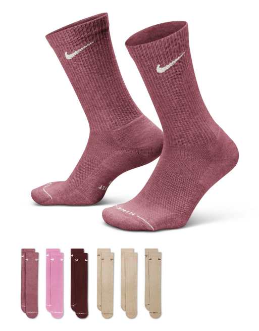 Nike Everyday Plus 6 pack crew socks in pink and beige