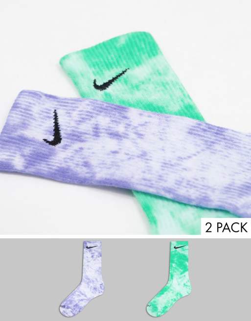 Nike Everyday Plus Cushioned 2-pack tie dye crew socks in purple and green
